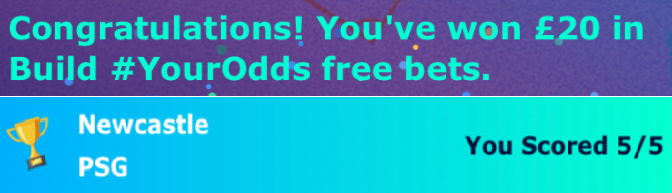 - Free bets are given as 4 x £5 for five correct answers, and £2 for four correct answers.